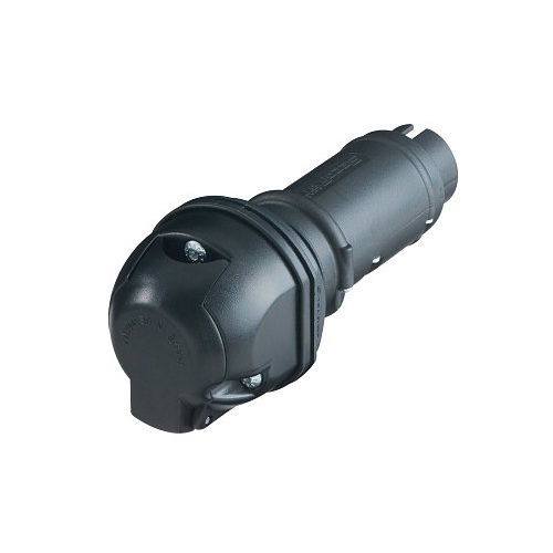 Jännitteenmuunnin 24V vetoauton 7-nap "vakio" pistorasian ja 12V perävaunun 13-nap. "vakio" pistokkeen väliin.
