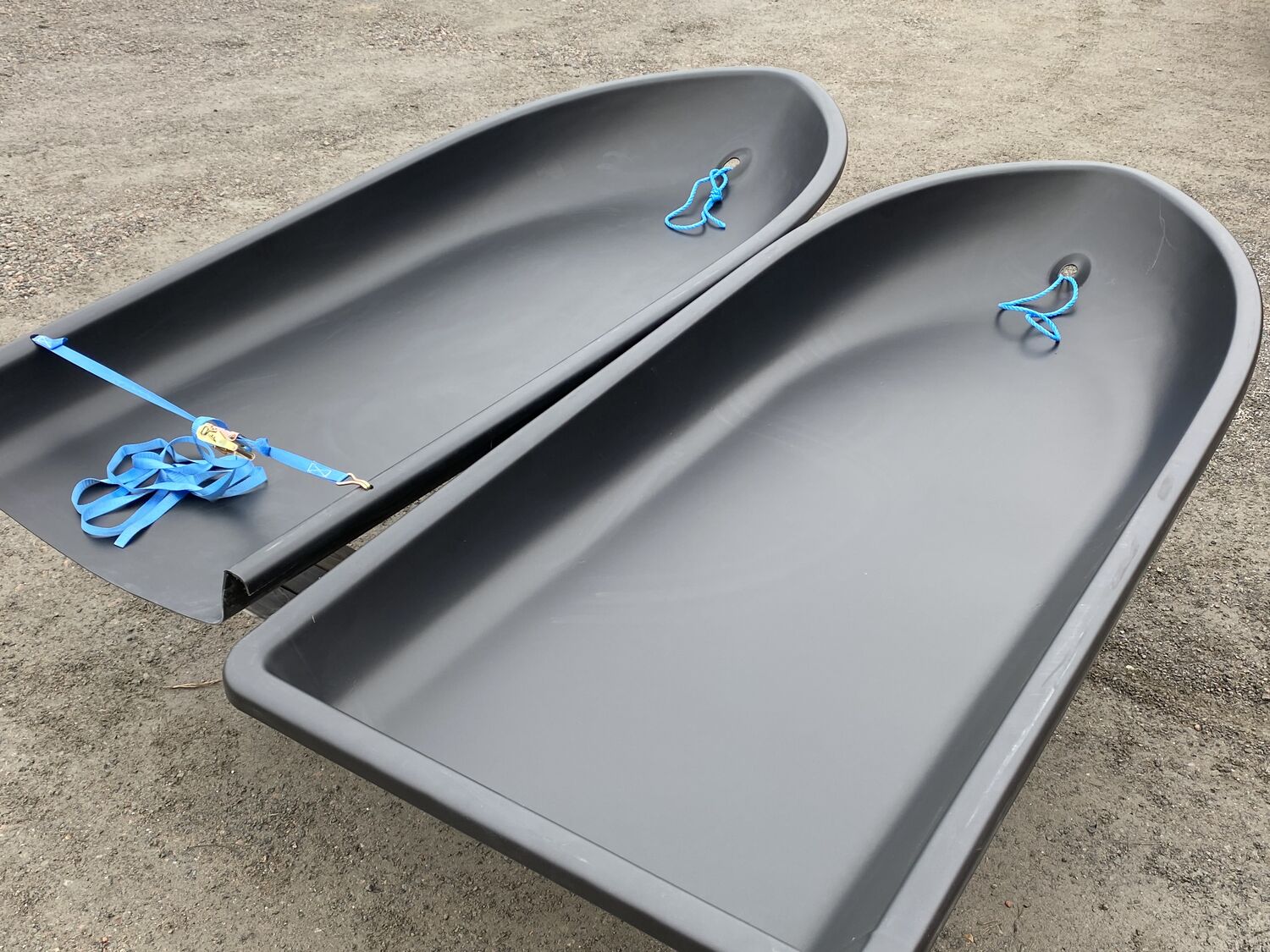 Voidaan käyttää takareunan kanssa tai takareunan voi leikata pois merkityn viivan kohdalta. Riistan kyytiin vetäminen on tällöin vielä helpompaa. Kelkan reuna on kaareva, joten sitä on helppo nostaa tarvittaessa - sekä kuorman kanssa että ilman kuormaa.