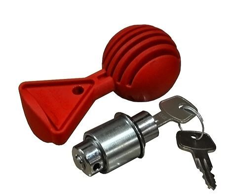 Kuulakytkimen kahvan sisään sopiva lukkopesä (kts sopivuudet alla). Lukko lukittuu kytkimen kahvaan estäen kahvan aukaisemisen. mukana 2 avainta Sopii mm. AL-KO AK7, AL-BE EM80, EM150, EM220...
