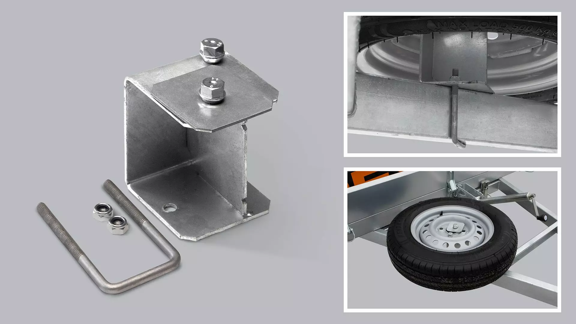 Kiinnitys vetoaisaan. Vararenkaan asento: vaakasuora.