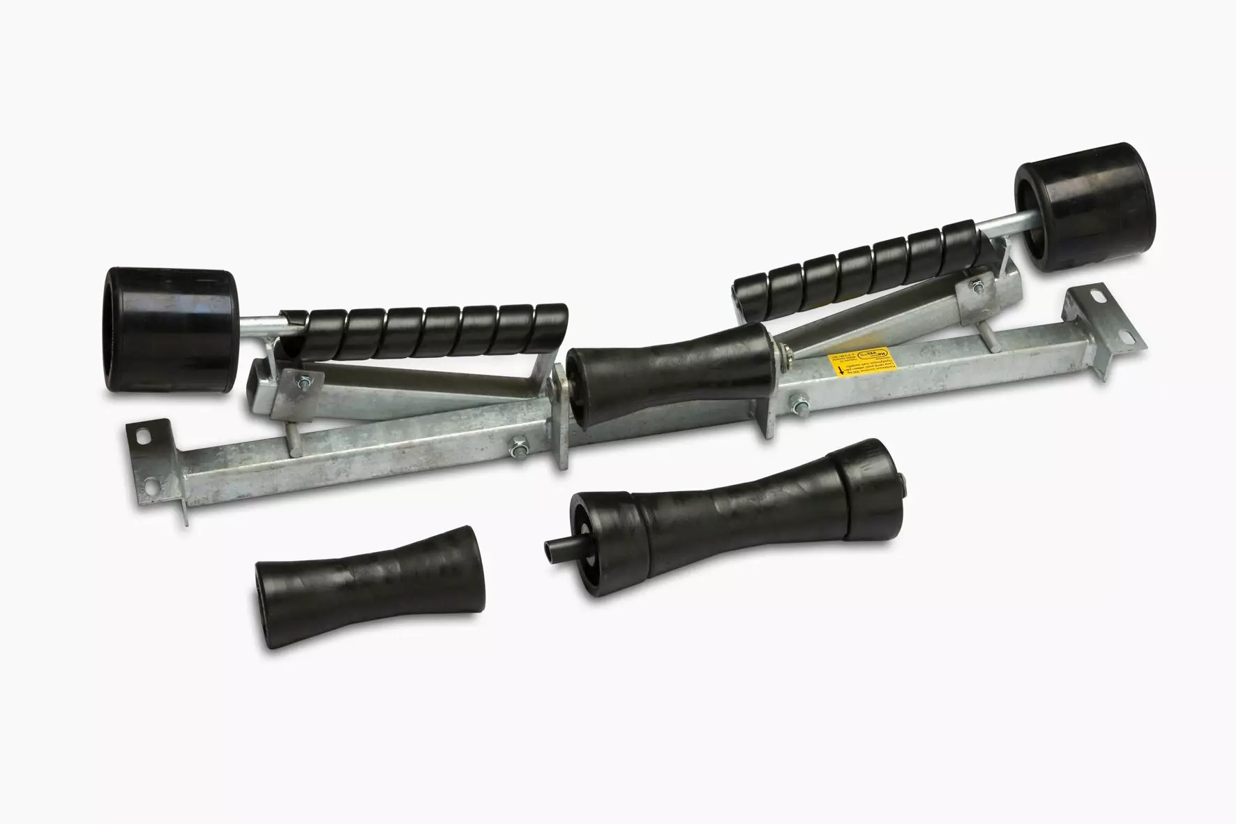Venetela kiinnitetään kahteen lankkuun. Leveiden rullien ansiosta vene ei putoa rullien väliin. Vene voidaan myös ajaa varovasti rullastolle. Sivurullissa portaaton kaltevuuden säätö.