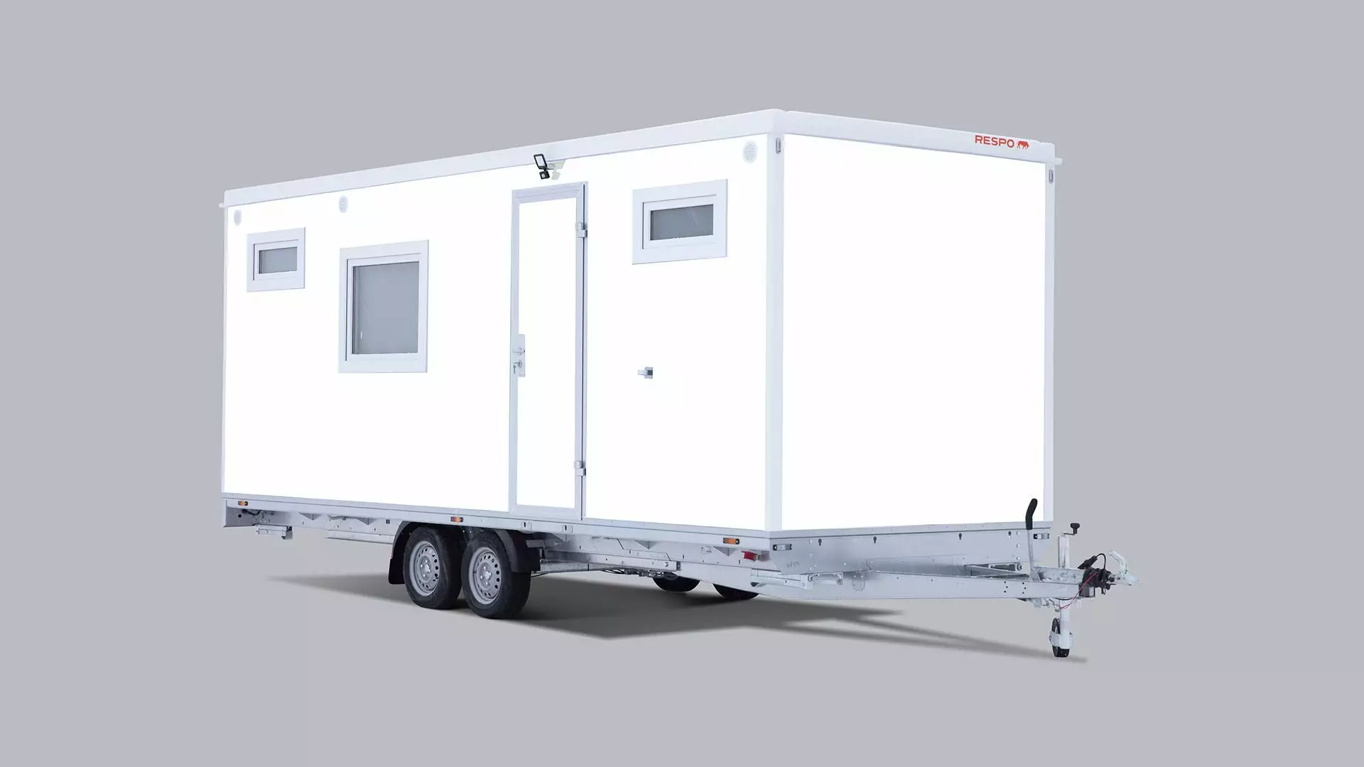 Respo 620 mobile office on tilava ja jämerä vaunu. Vaunussa on kaksi kerrossänkyillä varusteltua makuuhuonetta, keittiö sekä vesi-WC:lla kylpyhuone. Taukohuoneissa on tilaa ruokailla, vaihtaa vaatteita. Liitä 230V:n virtajohto sähköjärjestelmään, kytke letkut ja kaikki on valmista!
