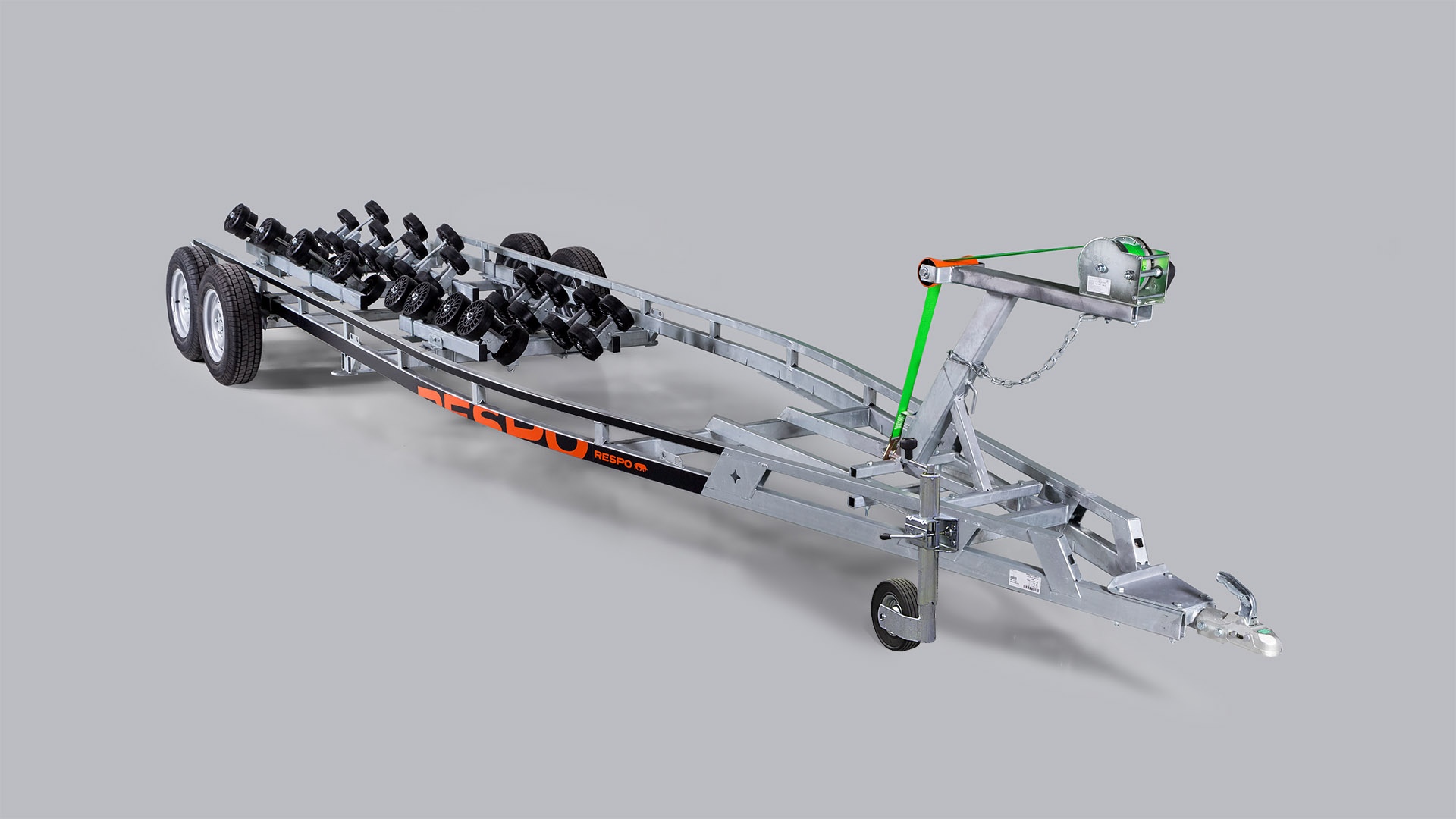 Innovatiivinen itsesäätyvillä rulleilla rantatraileri. Rullien suuri määrä auttaa jakamaan veneen kuorman yhtäläisesti vaunun päälle sekä tekee veneen noston mukavammaksi. Rullat ovat erittäin kestävät ja samalla tarpeeksi pehmeät jotta veneen vahingoittumisilta vältytään. Kölirullien puuttumisen ansiosta traileri sopii hyvin kaikenlaisten pohjan muotoiluilla veneiden kuljettamiseksi. Trailerissa ei jousia, valoja eikä sähkösysteemiä - ei tieliikennekäyttöön!