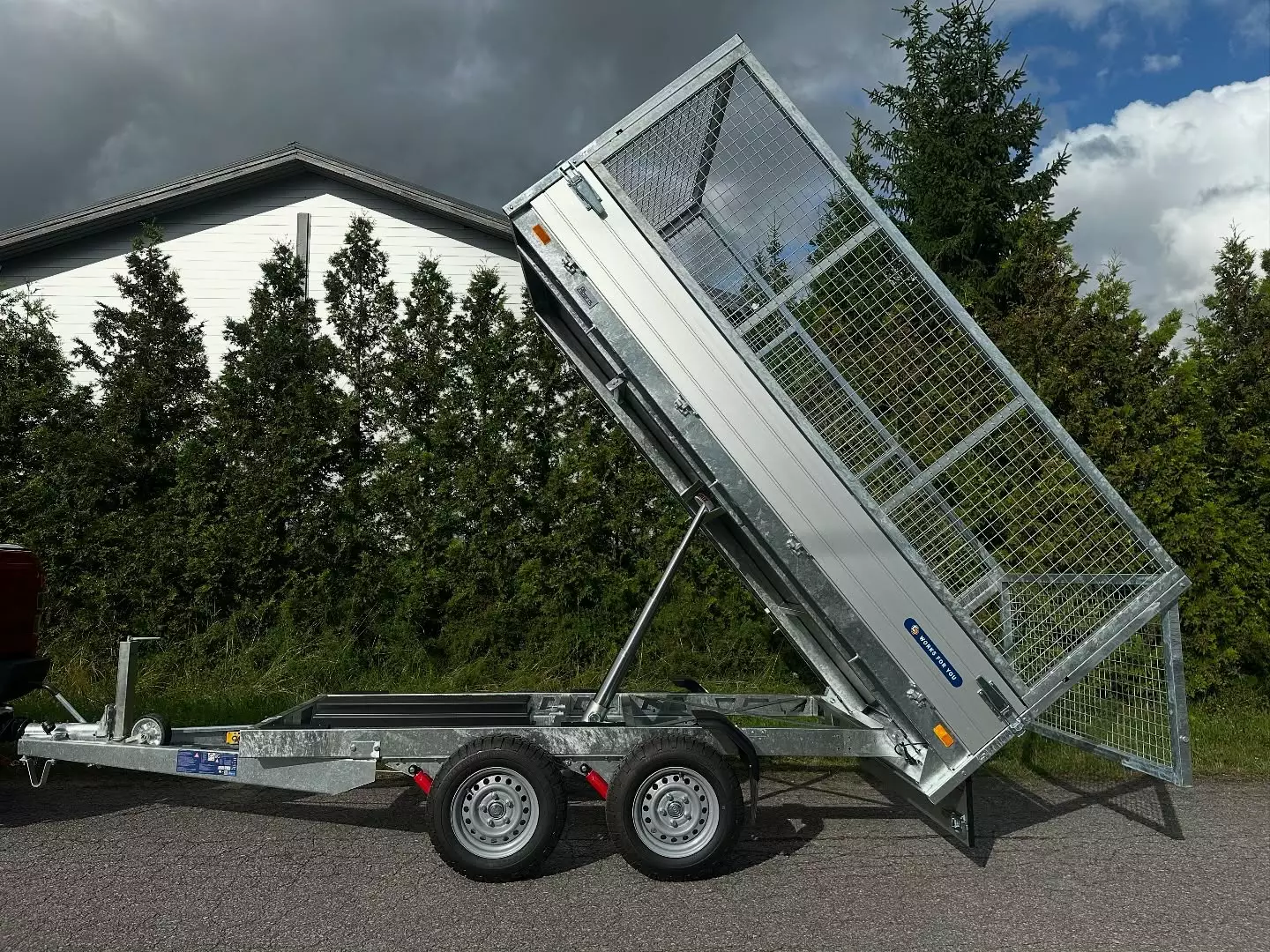 Vakiovarusteet: Suuri kippauskulma yli 42 astetta hydraulinen kippaus 3-putkinen sylinteri Kokonaan hitsattu ja kastamalla kuumasinkitty Yli 200 robotti hitsaus saumaa Erikoisvahvat alumiiniset laidat 30 cm korkeat Äänettömät sidontalenkit v-urissa 6 kpl 800 kg per lenkki Runko makaa kumien päällä. tekee vaunusta hiljaisen 15 mm pinnoitettu vaneri pohja jonka päällä sinkitty pelti nokkapyörä 250/1000 kg Hitsattuja sidontapisteitä vaunun ulkopuolella Pressu kiinnikkeet saranoissa Takuu 36 kk