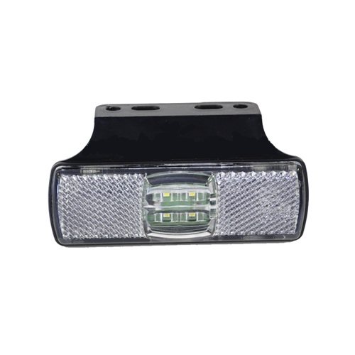 Valkoinen led äärivalo 12-30V. Valo kiinnitetty asentamista helpottavaan muovikiinnikkeeseen. Liitinjohdot 450mm. Virrankulutus: 12V (0,04A/ 0,5W) ja 24V (0,02A/ 0,5W). E-hyväksytty.