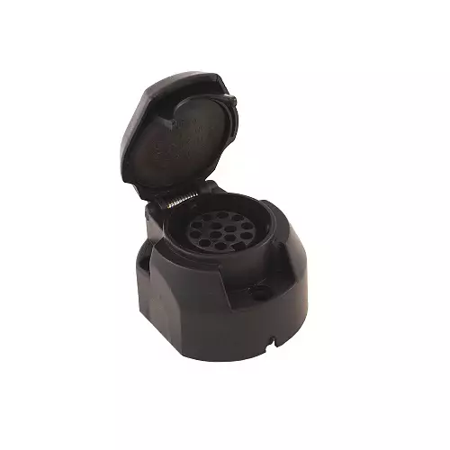 Muovi pistorasia 13-napainen. Ruuvikiinnitteiset johtoterminaalit.