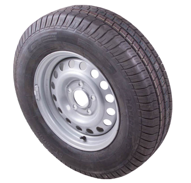 Pyörä 185R14C8 M+S perävaunun pyörä. Yleisin pyöräkoko jarrullisissa 2500-3000 kg 2-aks perävaunuissa. Sopii ympärivuotiseen käyttöön kun vetoautossa kitkarenkaat.