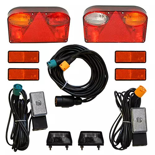 Peräkärryn valosarja 5,8m jarruttomaan peräkärryyn. Sis takavalot, joissa sumuvalo vasemmalla puolella, etuäärivalot, rekisterikilvenvalot (2kpl) ja keltaiset tarrakiinnitteiset heijastimet (4kpl). Helposti ja nopeasti asennettavassa valosarjassa on etuvalot valmiiksi kytketty johtosarjaan joka liitetään pikaliittimillä takavaloihin. Samasta johdosta lähtee 2-napainen johto rekisterikilvenvaloille joka kytketään polttimon napoihin. Pääjohto 5,3m, äärivalojen johdot 4m, rek.kilvenvalon johto 1m.